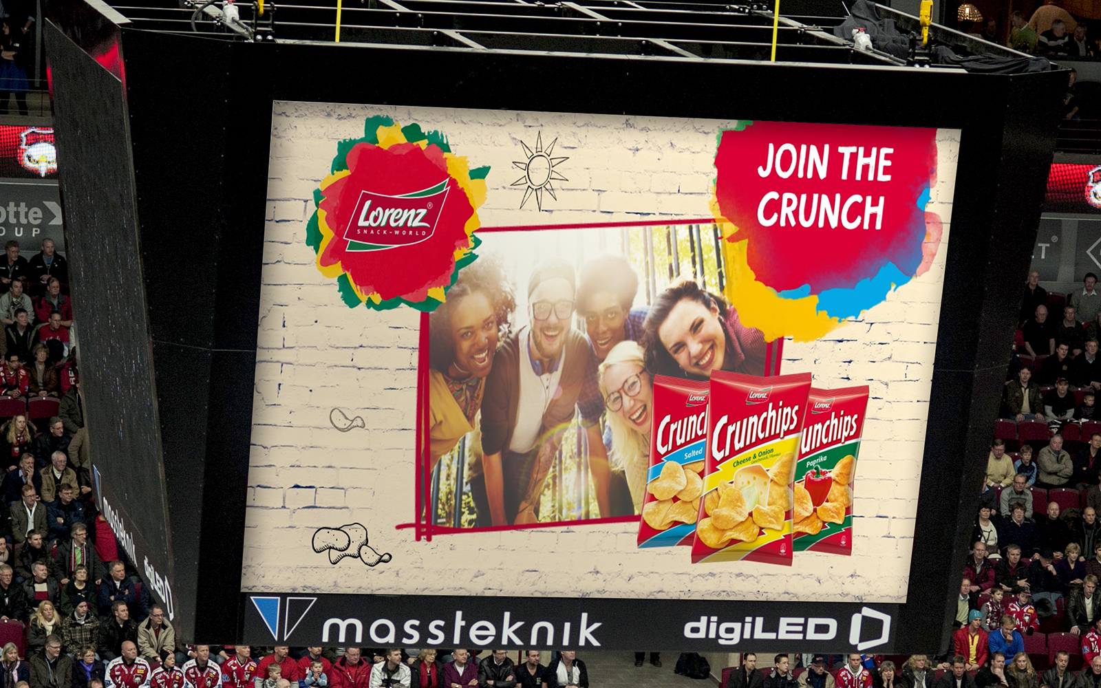Für The Lorenz Bahlsen Snack-World, ein führendes Unternehmen im Bereich Knabbergebäck, wurde ich beauftragt, einen animierten Spot zu entwickeln, der im Rahmen einer Eishockeyveranstaltung ausgestrahlt werden sollte. Der Fokus lag auf der visuellen Präsentation von drei neuen Geschmacksrichtungen der Crunchips.